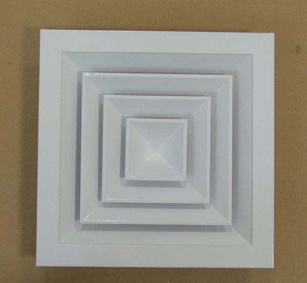 方形散流器先調挺直,表面光潔,葉片角度為固定式,葉片采用夾角片沖壓連接,整個葉片與邊框采用分離式結構,以方便安裝與調節。設計時可根據房間造型不同,選用不同出風方向的散流器,可與調節閥配套使用鋁合金表面經陽極氧化處理,也可根據用戶要求進行靜電噴塑處理。